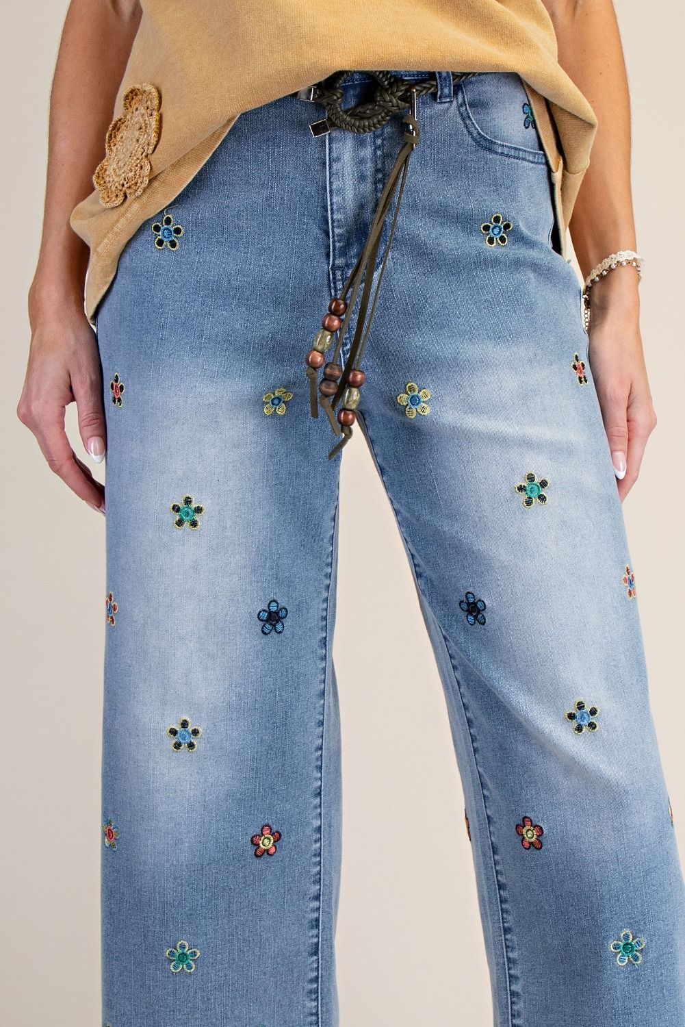 Perfect for spring and summer styling, these embroidered jeans bring whimsical, coastal-boho flair to casual days and dressed-up looks alike.