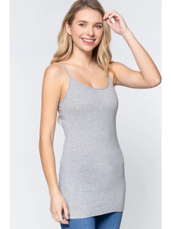 A timeless wardrobe staple, this solid camisole features adjustable straps for a personalized fit and an elongated silhouette perfect for layering. Crafted from a soft and stretchy cotton-spandex blend, it offers all-day comfort whether worn on its own or under your favorite tops and kimonos. A must-have basic with endless styling potential.