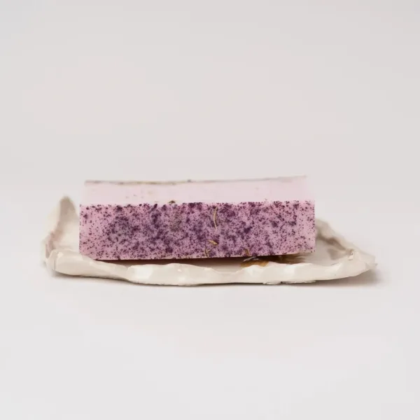 Jasmine Goat Milk Soap with Dish-Small batch cold process goat milk soap with simple and responsibly sourced ingredients. The soap dish is hand crafted from clay, with a flower pressed into the dish from the Artisans Native Bee Habitat. Sealed for protection. Each clay dish is unique as the flowers are always different. Approximate size of dish is 5″ x 5″.