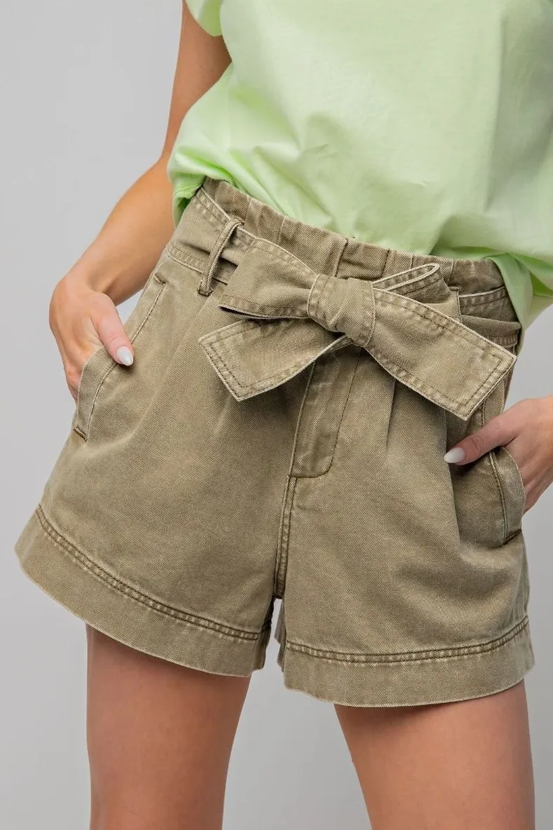 Add a soft touch of style to your summer wardrobe with these washed olive brushed cotton shorts. Featuring a comfortable mid-rise fit, these shorts are designed with charming bow accents and cuffed hems for a playful yet polished look. The brushed cotton fabric offers a lightweight, breathable feel—perfect for warm days and relaxed outings. Pair them with a tucked-in tank or flowy top for effortless, everyday chic.